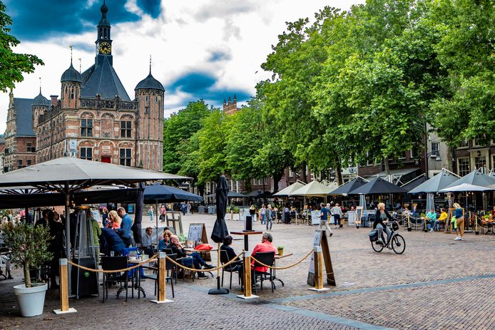 ,,bijvoorbeeld aan de stille kant van de nieuwestad waar ook eenrichtingsverkeer is ingesteld om de doorstroming te bevorderen. Behalve de reguliere terrassen, komen er overal in de stad nieuwe terrassen bij, en worden bestaande terrassen uitgebreid. Wat er daarna gebeurt, is aan de ondernemer zelf. Het is een protest vanuit caféhouders en restauranteigenaren. Heb dat overspannen gedoe al meegemaakt vorig jaar maart.